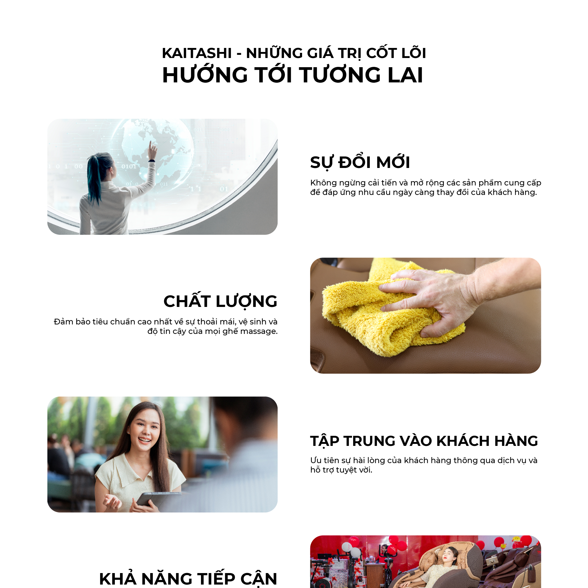 Kaitashi tự hào là đơn vị tiên phong mang đến giải pháp ghế massage tính tiền tự động hiện đại, thông minh và hiệu quả, mở ra xu hướng kinh doanh mới đầy tiềm năng cho các nhà đầu tư. Với công nghệ vượt trội, hệ thống vận hành hoàn toàn tự động và trải nghiệm massage thông minh, Kaitashi khẳng định vị thế thương hiệu uy tín – đẳng cấp – bền vững.